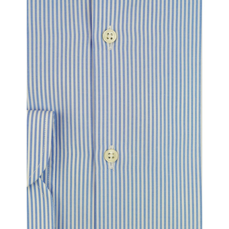 Elevate your wardrobe with the sleek sophistication of Bagutta. This slim-fit shirt, crafted in lightweight cotton, is an embodiment of Italian sartorial elegance. Adorned with a French collar and mother-of-pearl buttons, it’s a harmonious blend of tradition and modernity. Perfect for the warm seasons, this Bagutta shirt in light blue offers comfort without compromising on style.