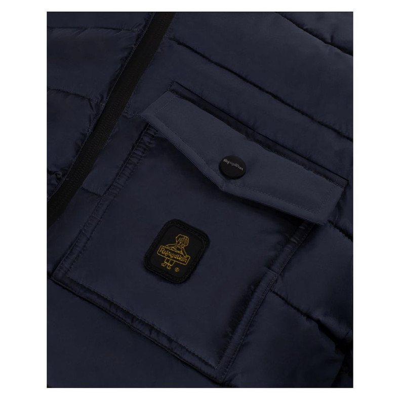 Refrigiwear short nylon down jacket with straight collar, double-slider zip front fastening, zipped handwarmer pockets, snap button pocket on the heart side, inside pocket, slim fit