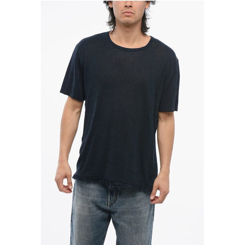 Alanui Linen Crew-neck T-Shirt with Frayed Hem