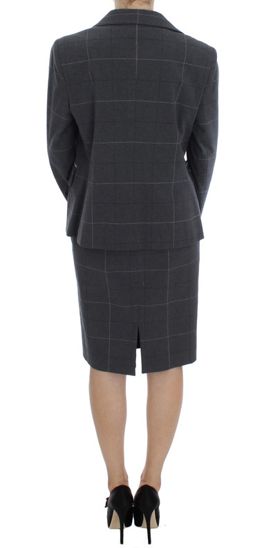 BENCIVENGA Elegant Gray Checkered Sheath Suit Set
