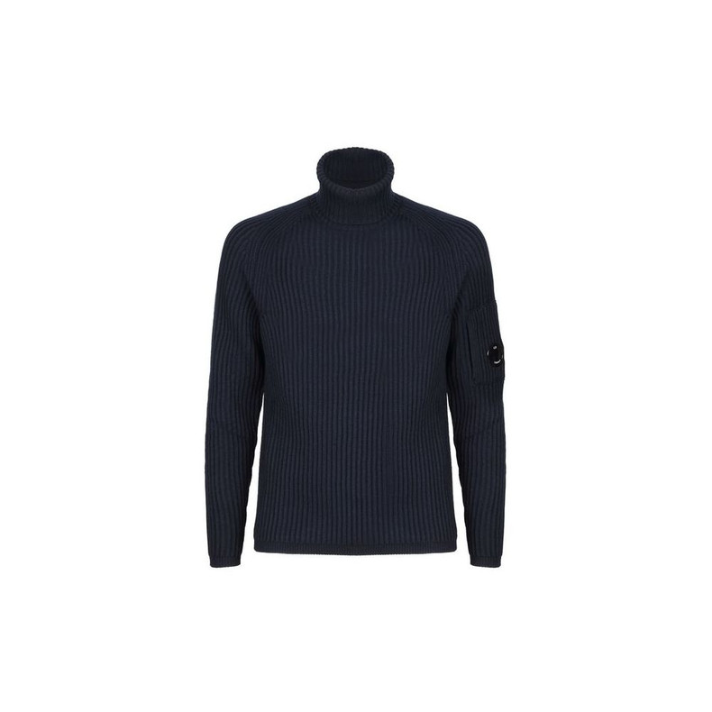c.p. Company, wool jumper, with turtle neck collar, black color, with zipped pocket on left side and iconic goggle.