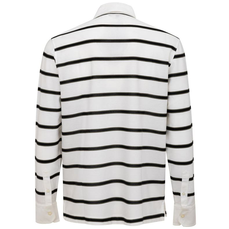 Polo Canali white with navy blue stripes long sleeve cotton closure with a prominent button and embroidered logo