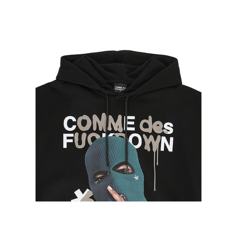 Comme des Fuckdown cotton hoodie with drawstring, graphic print on the front