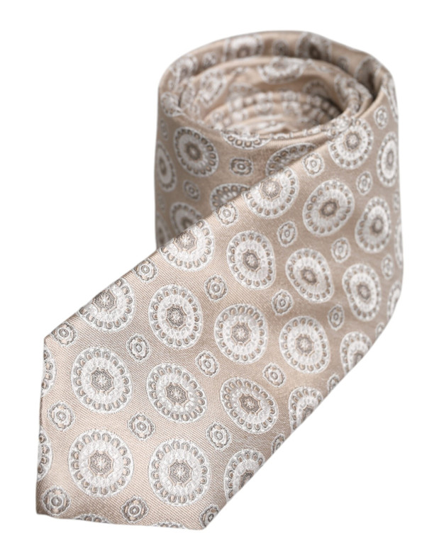 Dolce & Gabbana Beige Foulard Print Silk Adjustable Necktie Tie