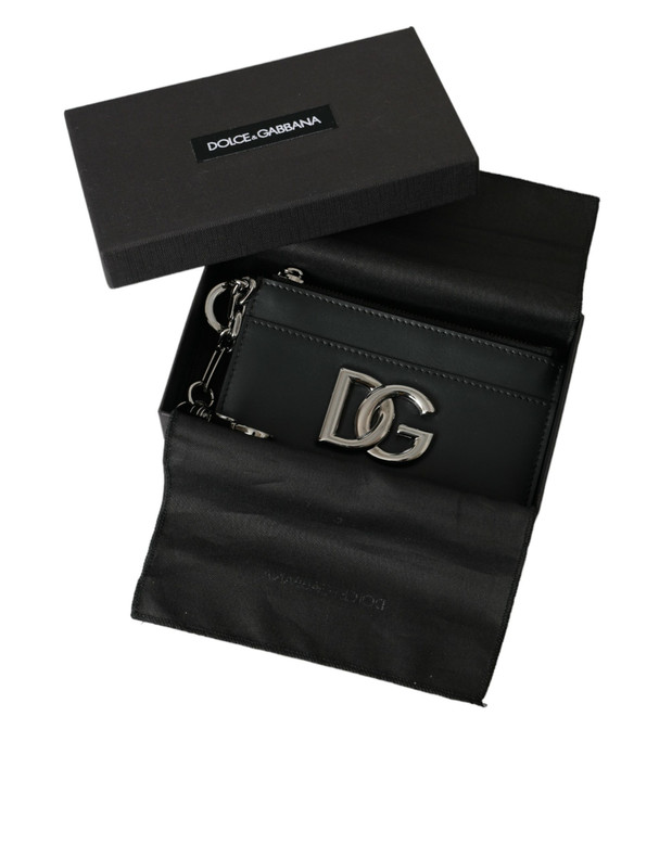 Dolce & Gabbana Black Calfskin Leather DG Logo Card Holder Wallet Men