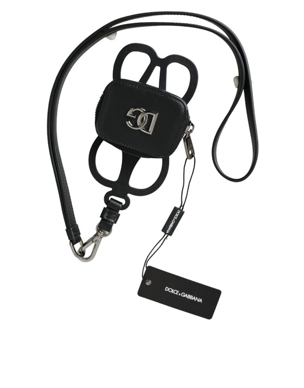 Dolce & Gabbana Black Calfskin Leather DG Logo Coin Purse Lanyard Wallet