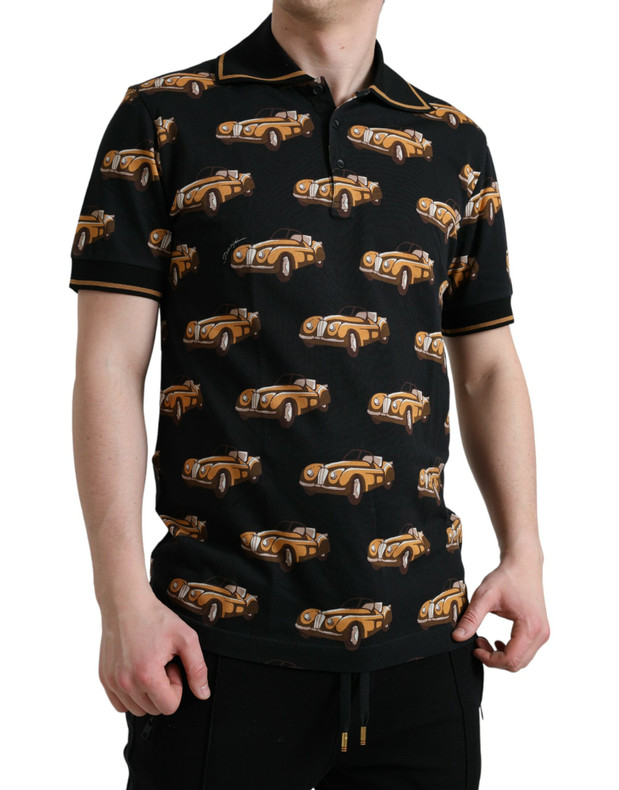 Dolce & Gabbana Black Car Print Short Sleeve Polo T-shirt