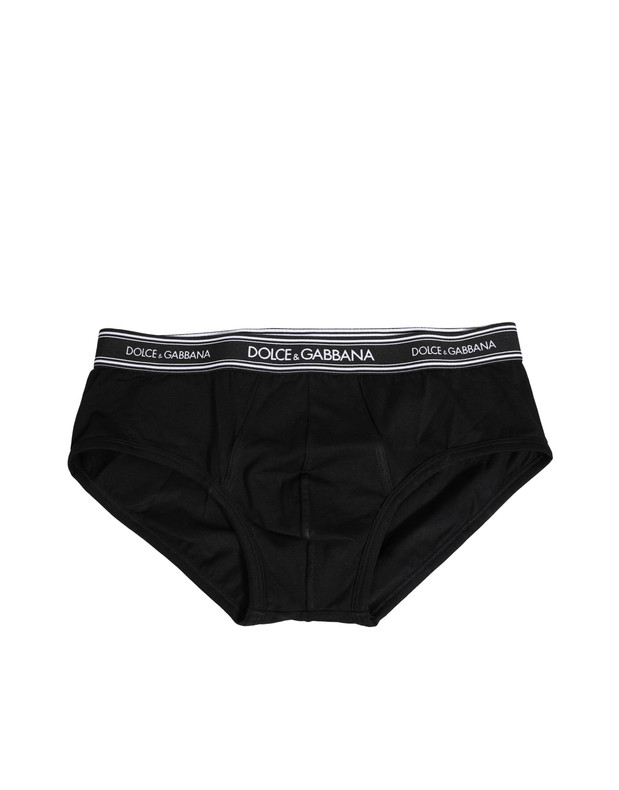 Dolce & Gabbana Black Cotton Stretch Logo Print Brief Underwear