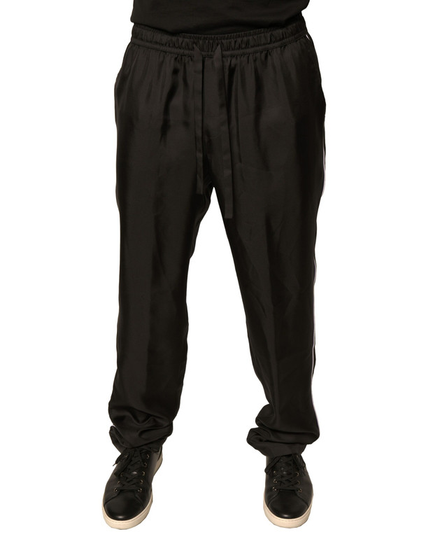 Dolce & Gabbana Black DG Logo Silk Jogger Sweatpants Pants