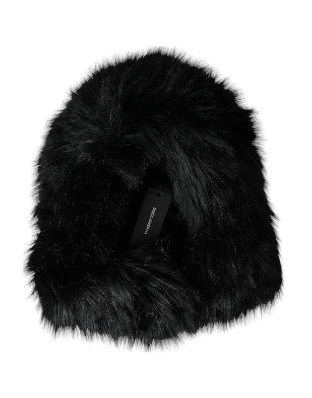 Dolce & Gabbana Black Faux Fur Whole Head Wrap Hat