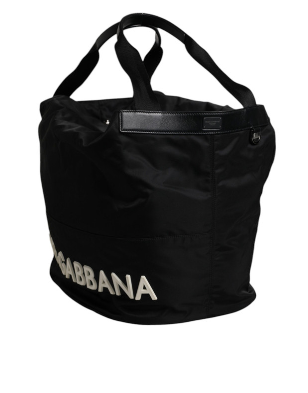 Dolce & Gabbana Black Nylon White Iconic Logo Shoulder Bucket Bag