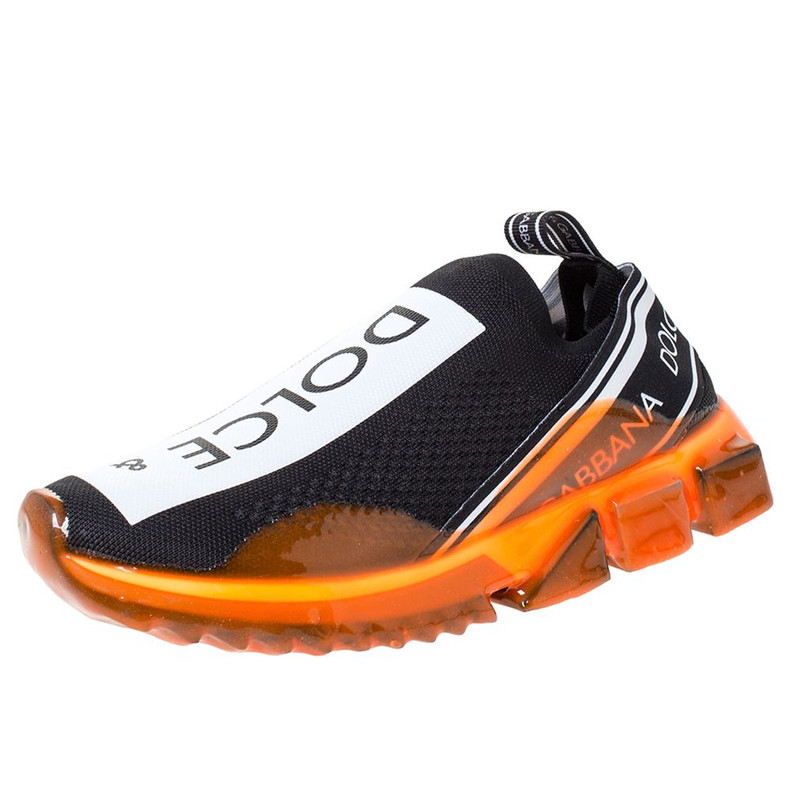 Dolce & Gabbana low sneakers in nylon mesh with logo print and fluorescent orange rubber coating on the sole