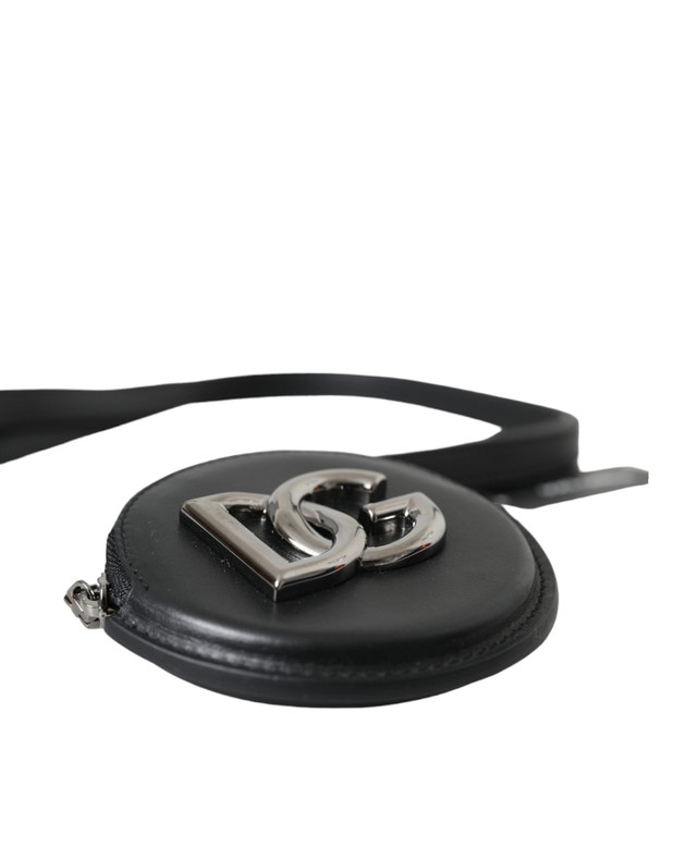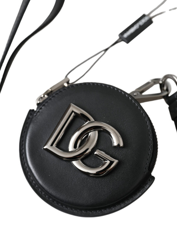 Dolce & Gabbana Black Round Leather DG Logo Coin Purse Lanyard Wallet