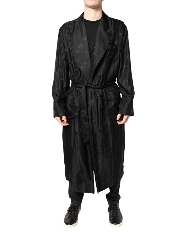 Dolce & Gabbana Black Silk DG Logo Men Wrap Robe Coat Jacket