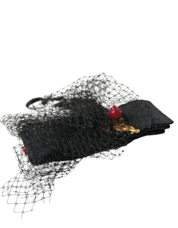 Dolce & Gabbana Black Strawberry Sicily Crystal Mesh Net Headband Diadem