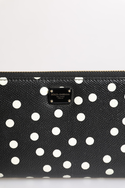 Dolce & Gabbana Black White Dotted Leather Zip Around Continental Wallet