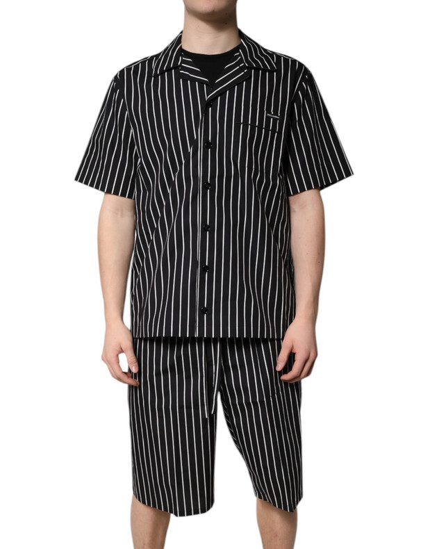 Dolce & Gabbana Black White Stripes Cotton Men Pajama Set Sleepwear