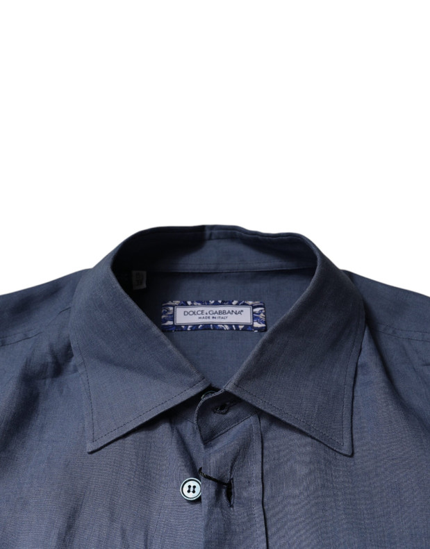 Dolce & Gabbana Blue Logo Long Sleeve Button Down Casual Shirt