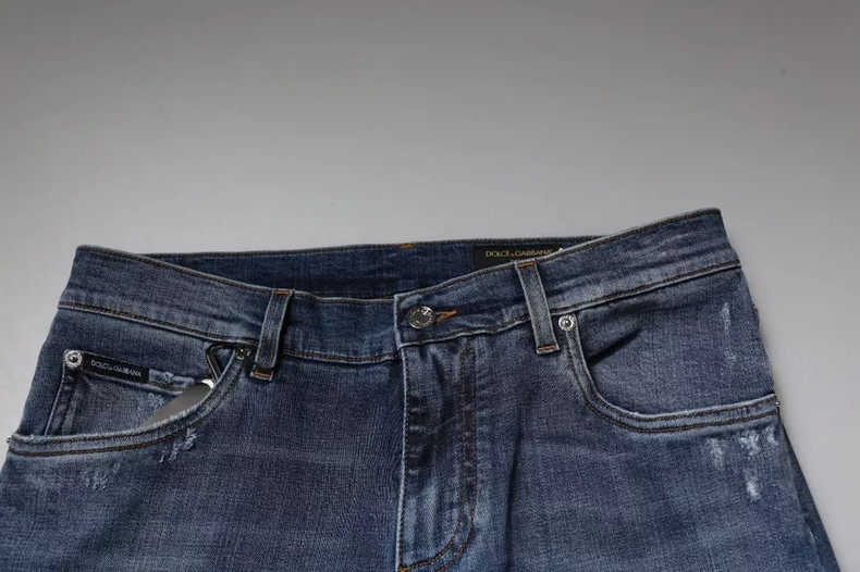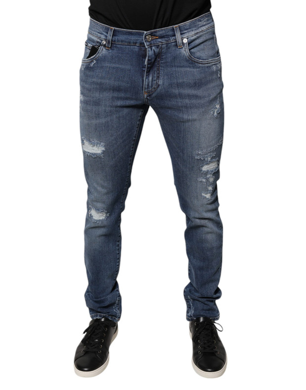 Dolce & Gabbana Blue Tattered Cotton Stretch Skinny Denim Jeans
