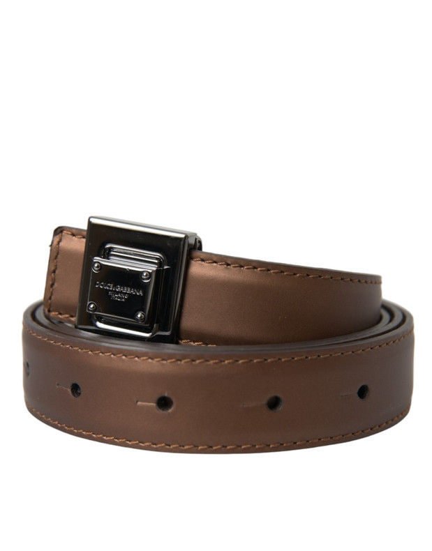 Dolce & Gabbana Bronze Leather Square Metal Buckle Belt