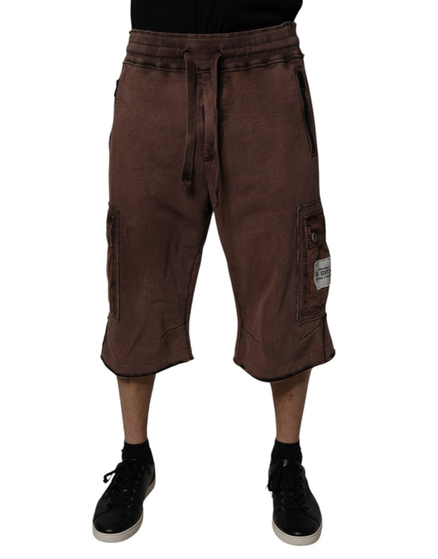 Dolce & Gabbana Brown Cotton Cargo Bermuda Sweatshorts Shorts