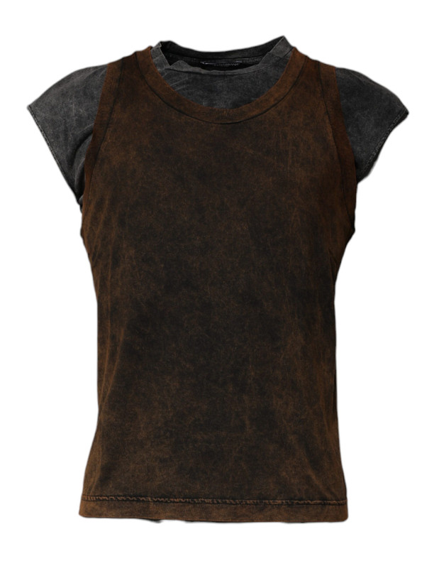 Dolce & Gabbana Brown Cotton Round Neck Sleeveless T-shirt