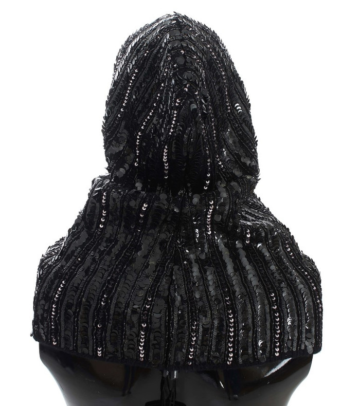 Dolce & Gabbana Elegant Black Sequined Hooded Scarf Wrap