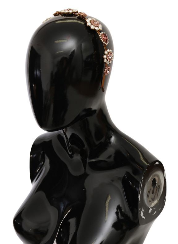 Indulge in the opulence of Dolce & Gabbana with this exquisite crystal and pearl diadem tiara. A prime example of luxury, this headpiece is perfect for making a statement at any high-end occasion. Adorned with sparkling clear and pink crystals and lustrous pearls, it is an embodiment of elegance and high-fashion craftsmanship.