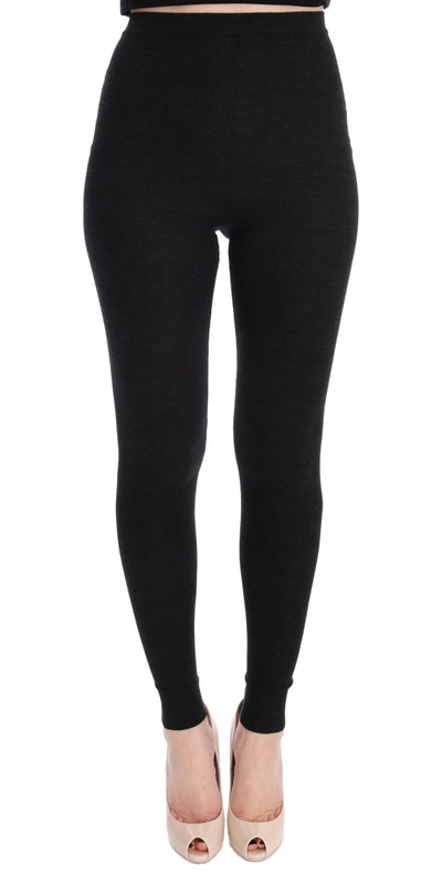 Discover the epitome of Italian craftsmanship with these Dolce & Gabbana high-waist stretch tights pants. Designed to offer a perfect blend of style and comfort, they are a luxurious addition to your wardrobe. The exquisite dark gray wool fabric ensures warmth and elegance for any occasion.