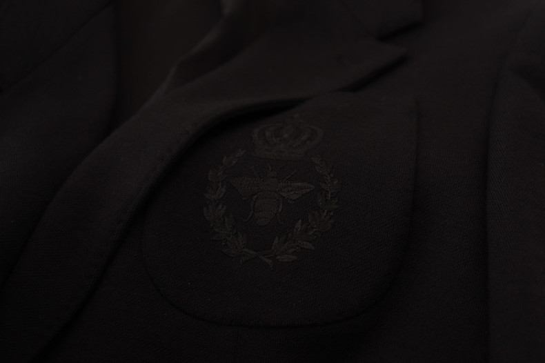 Exude sophistication with this absolutely stunning 100% Authentic Dolce & Gabbana blazer, brand new with tags. Crafted in Italy, this single-breasted blazer features a sleek black color, adorned with a unique Crown Bee embroidery on the chest. Its sharp silhouette is completed with a two-button closure, three exterior pockets, and two interior pockets for your essentials. With careful attention to detail and luxury materials, this blazer is a true representation of high fashion and elegance.