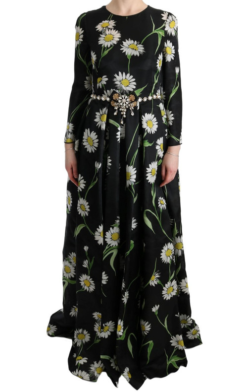 Dolce & Gabbana Elegant Sunflower Maxi Gown with Crystals