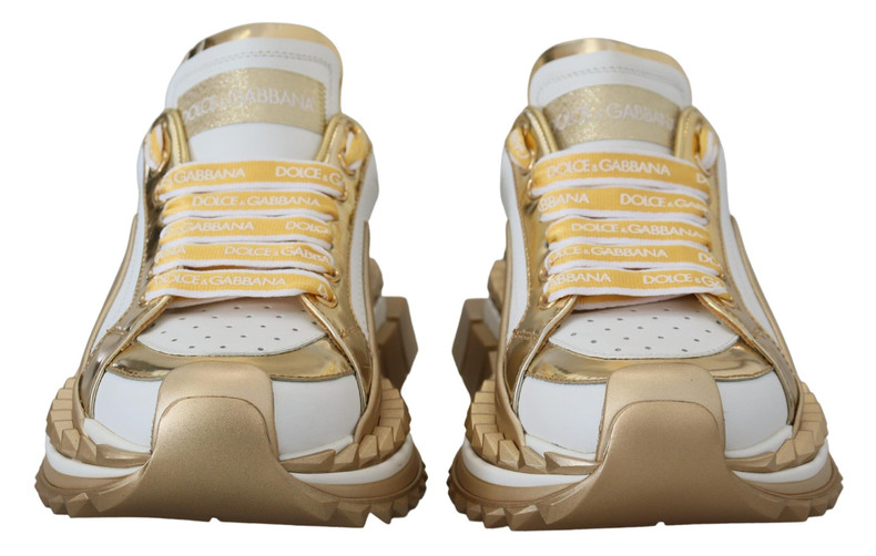 Dolce & Gabbana Elegant White and Gold Leather Sneakers