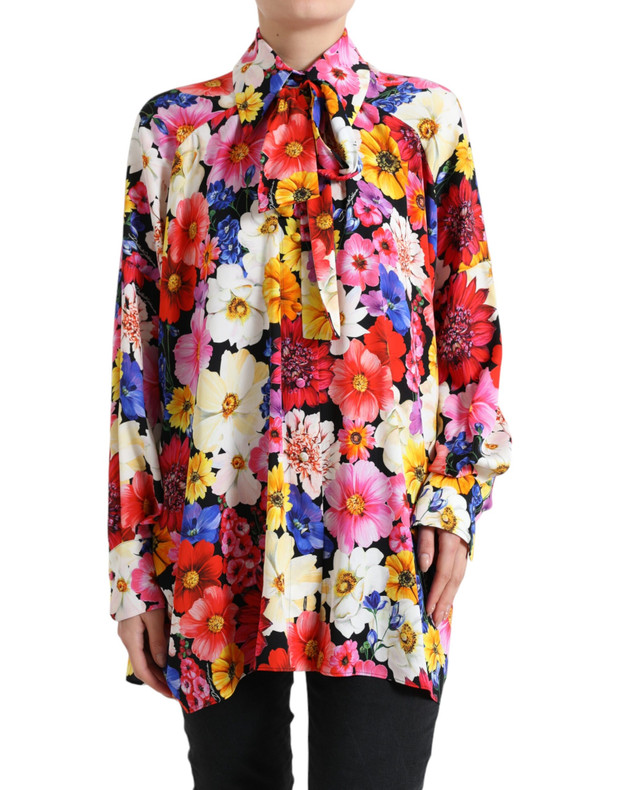 Dolce & Gabbana Floral Silk Blouse with Front Tie Fastening