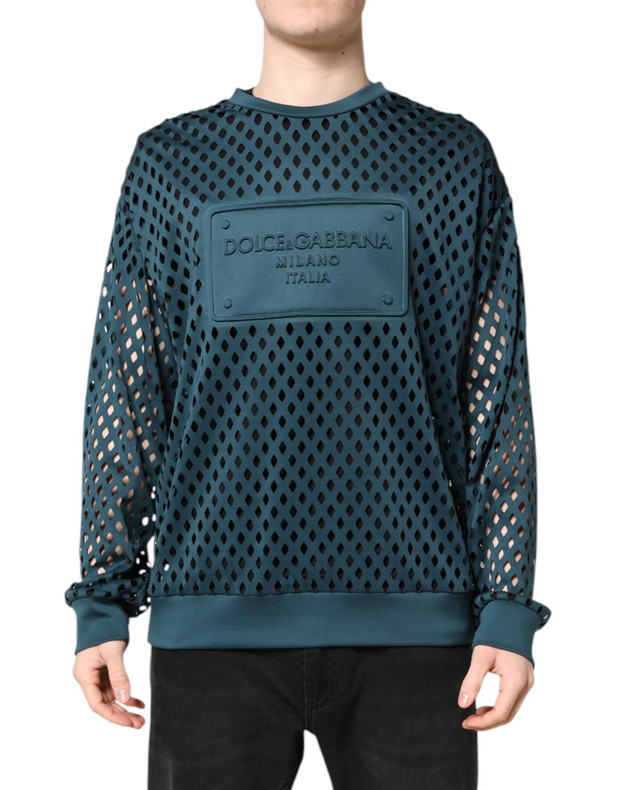 Dolce & Gabbana Green Perforated DG Embossed Pullover Sweater