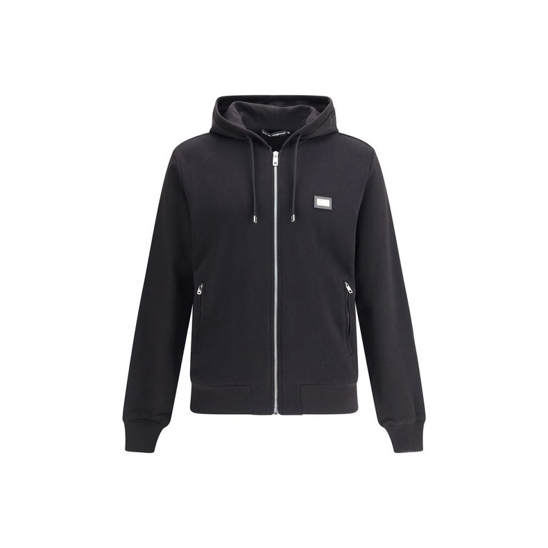 Cotton Hoodie by Dolce&Gabbana, a garment with a sporty and sophisticated style. The model features an adjustable drawstring hood, front zipper closure and two side zipper pockets for uncompromising practicality. Applied logo hardware on the front adds a touch of brand recognition, while ribbed cuffs and hem ensure a comfortable fit. A perfect garment for a casual yet classy look.