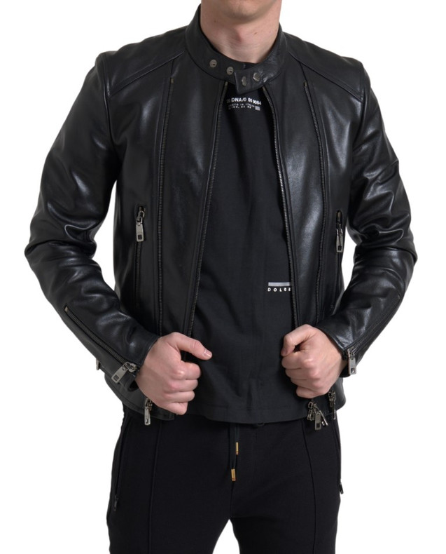 Dolce & Gabbana Sleek Black Leather Biker Jacket