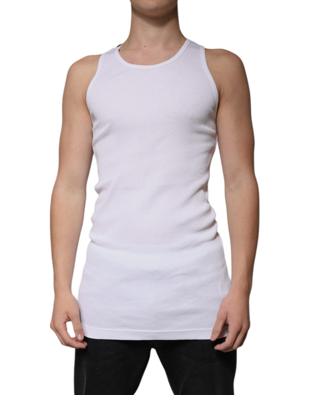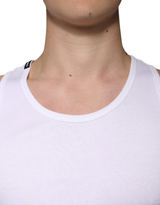 Dolce & Gabbana White Cotton Sleeveless Round Neck Tank T-shirt