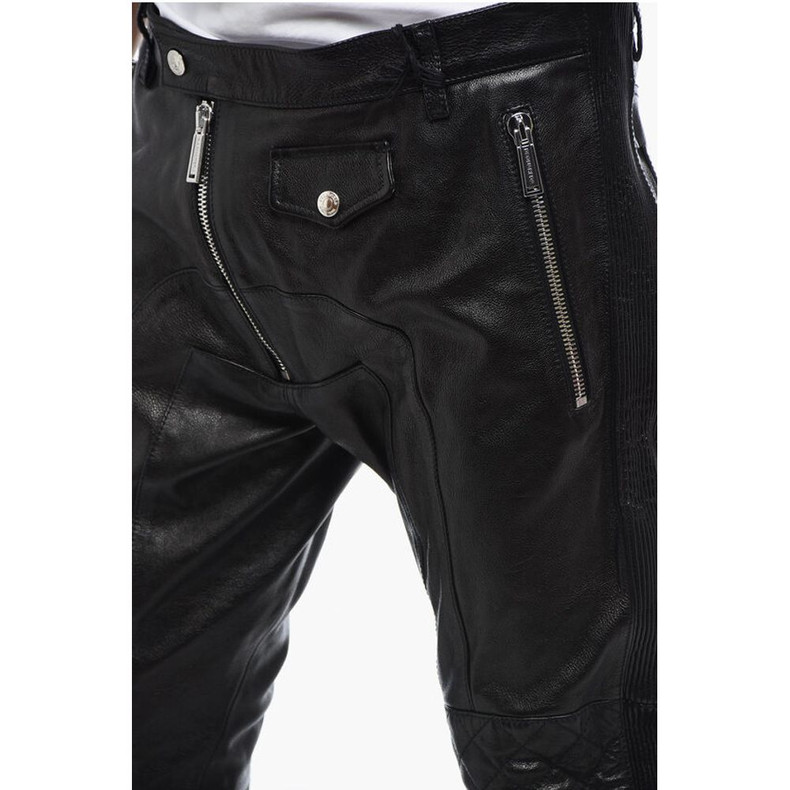Dsquared² Leather Biker Pants with Zipped Detailing