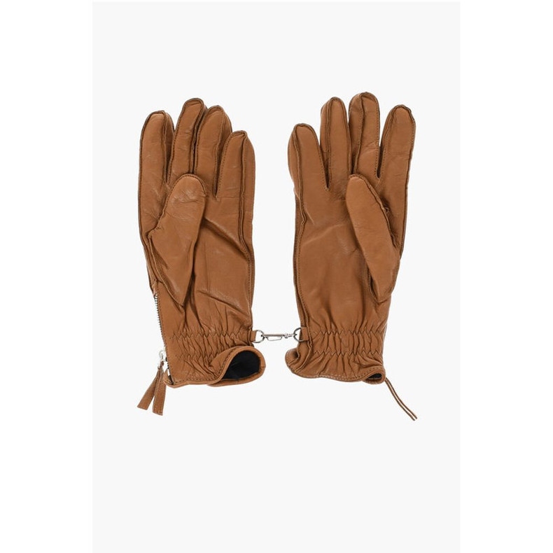Dsquared² Leather Gloves With Half Zip and Embossed Logo