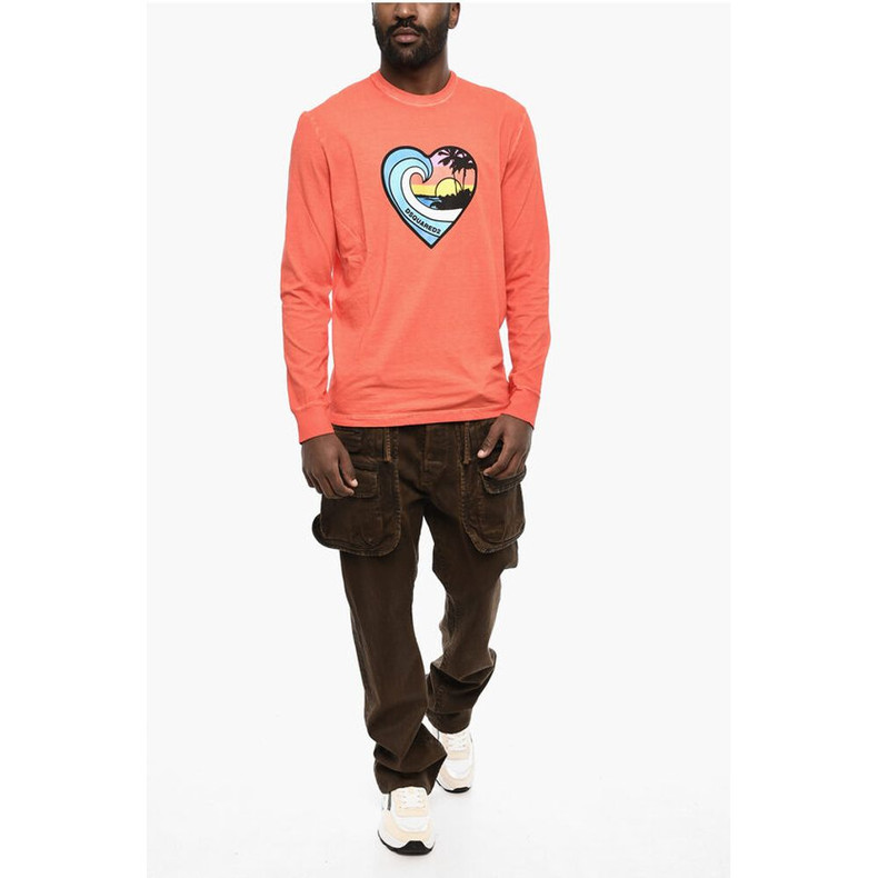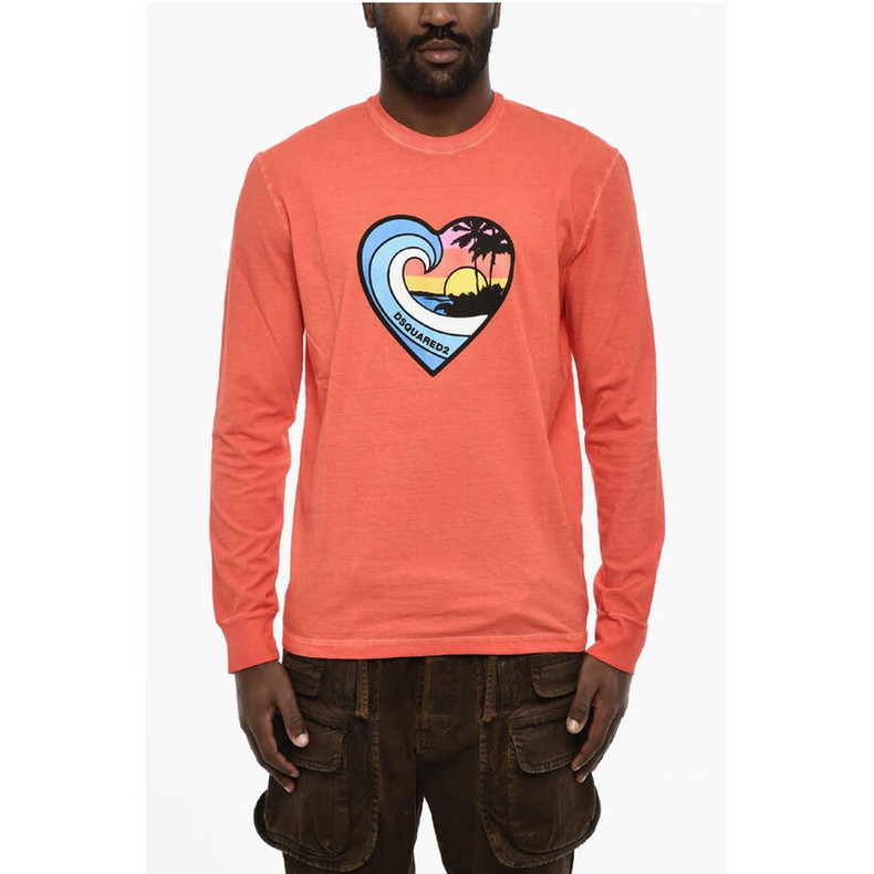 Dsquared² Long Sleeve Crew-neck T-shirt with Heart Print