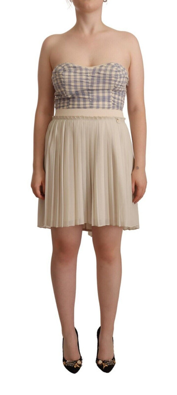 Step into the room with elegance in this stunning beige A-line dress from Guess, perfect for any upscale event. Boasting a classic strapless bustier design and pleated detailing, it blends timeless style with a touch of sophistication. Crafted from high-quality polyester, this dress is not only gorgeous but also comfortable to wear.