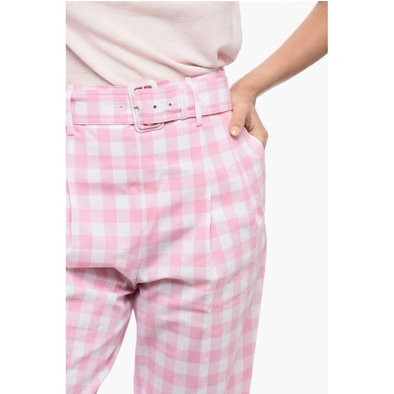 Prada Single-pleated Vichy Cotton Pants with Belt
