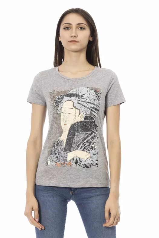 Unveil your bold stance with a touch of elegance in the Trussardi Action Short Sleeve T-Shirt. Crafted to allure the trendsetters, this top features a stunning front print that stands out effortlessly. Its gray tones resonate with contemporary chic, perfect for a statement look that speaks volumes without saying a word. Designed for those who dare to lead the fashion scene.