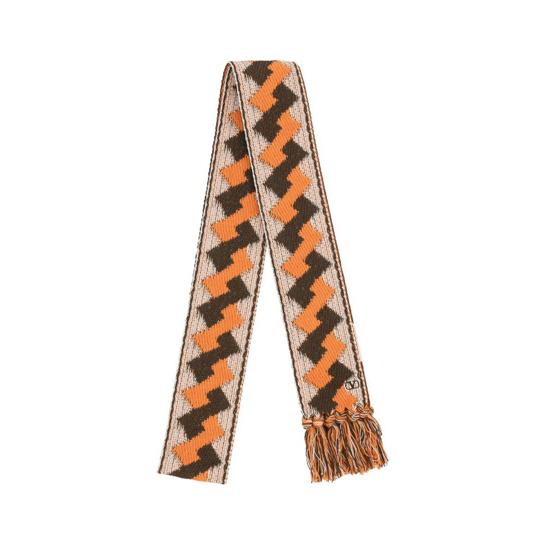 The Valentino Garavani Cotton Scarf is a lightweight and sophisticated accessory, perfect for adding a distinctive touch to any look. Featuring an elegant geometric design, it stands out for its soft and breathable texture, ideal in any season. Frayed hems complete the design with a modern, casual accent, reflecting the relaxed elegance typical of the house.