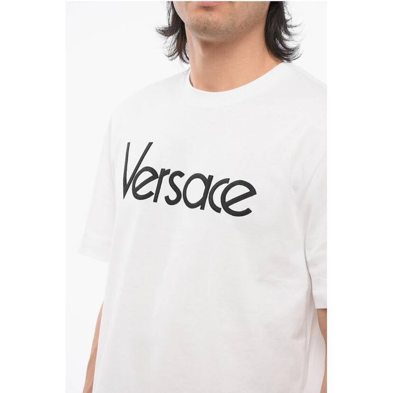 Versace Crew Neck Cotton T-Shirt with Embroidered Logo