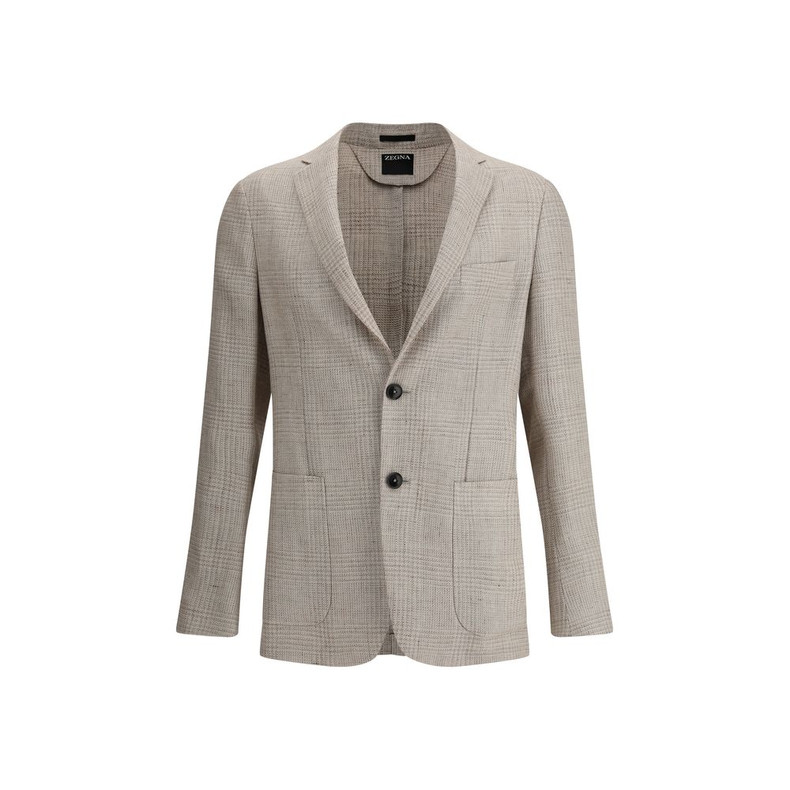 Zegna’s Luxury Blazer Jacket in linen and wool is an elegant and sophisticated piece. It features classic lapels and two welt patch pockets on the front, with a front breast pocket for a practical touch. The design is completed with two slits on the back panel, providing a comfortable fit and a refined silhouette.